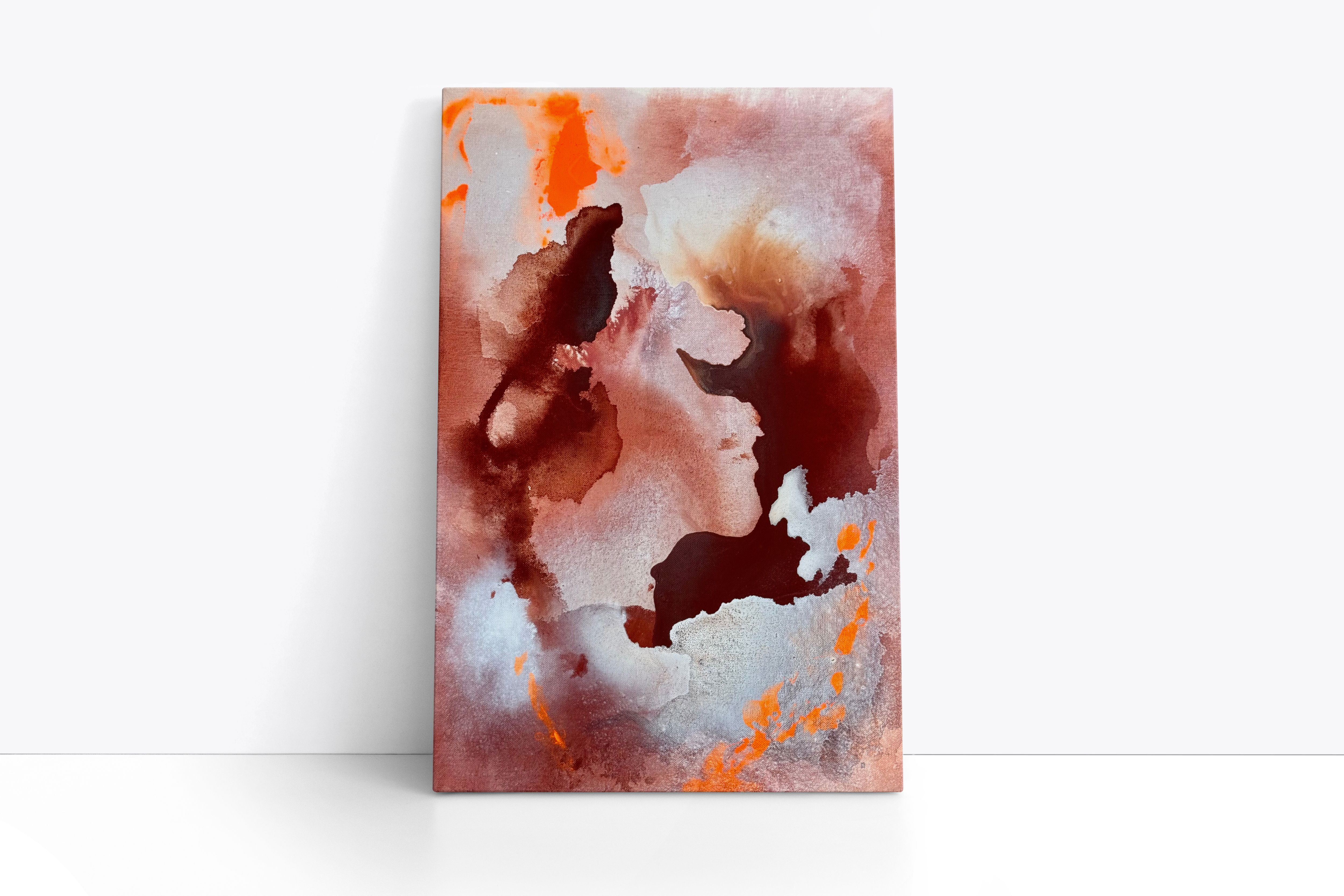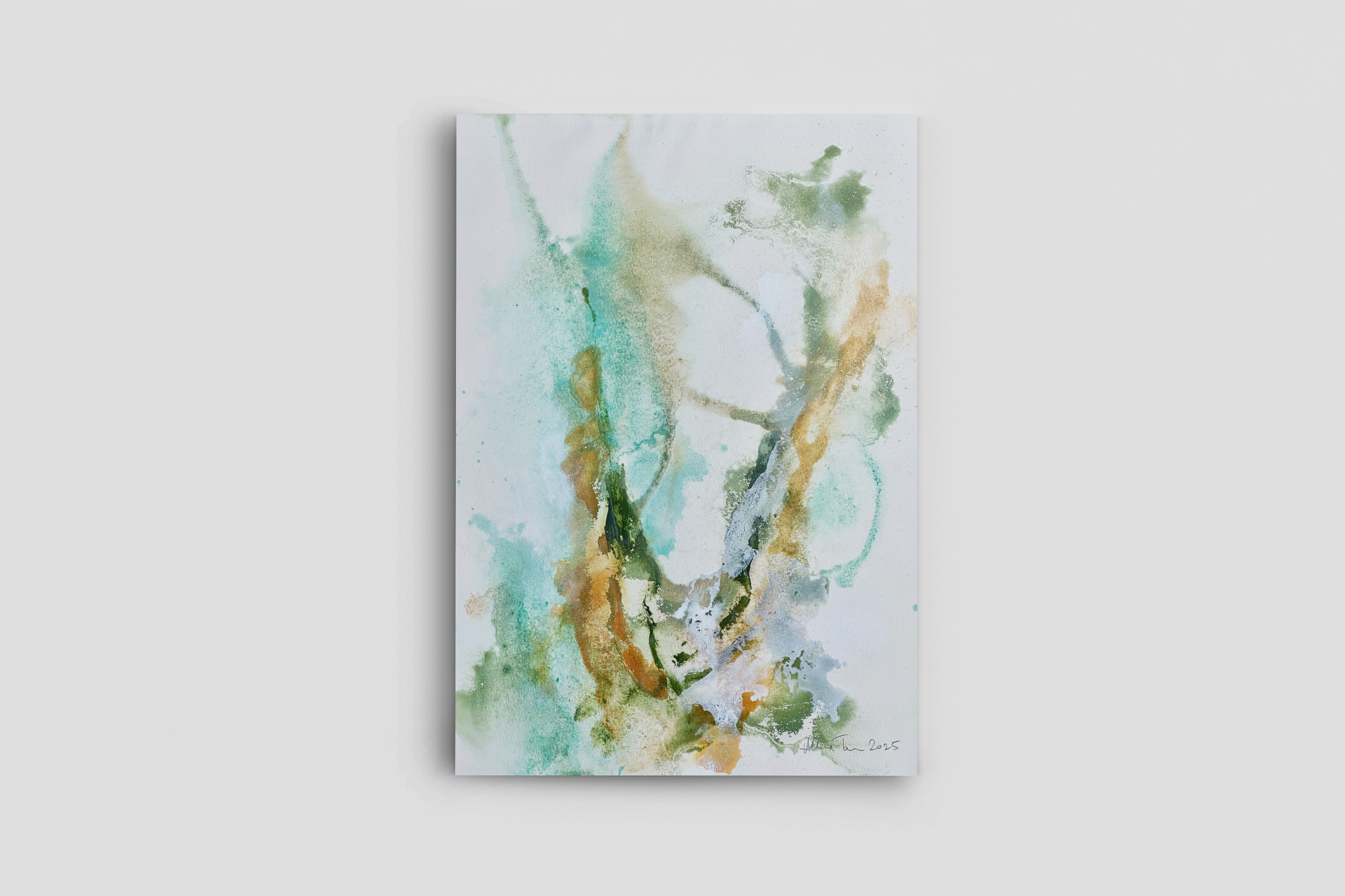 “Erosion Forms” is a series of works exploring the deep connection between the human body and the earth, formed from dust, shaped by time, and ultimately returned to soil. Through layered pigment, mineral textures, and fluid forms, the works reflect geological processes like sedimentation, erosion, and tectonic movement. The series meditates on the quiet power of natural forces and the cycles that shape both landscapes and lives.