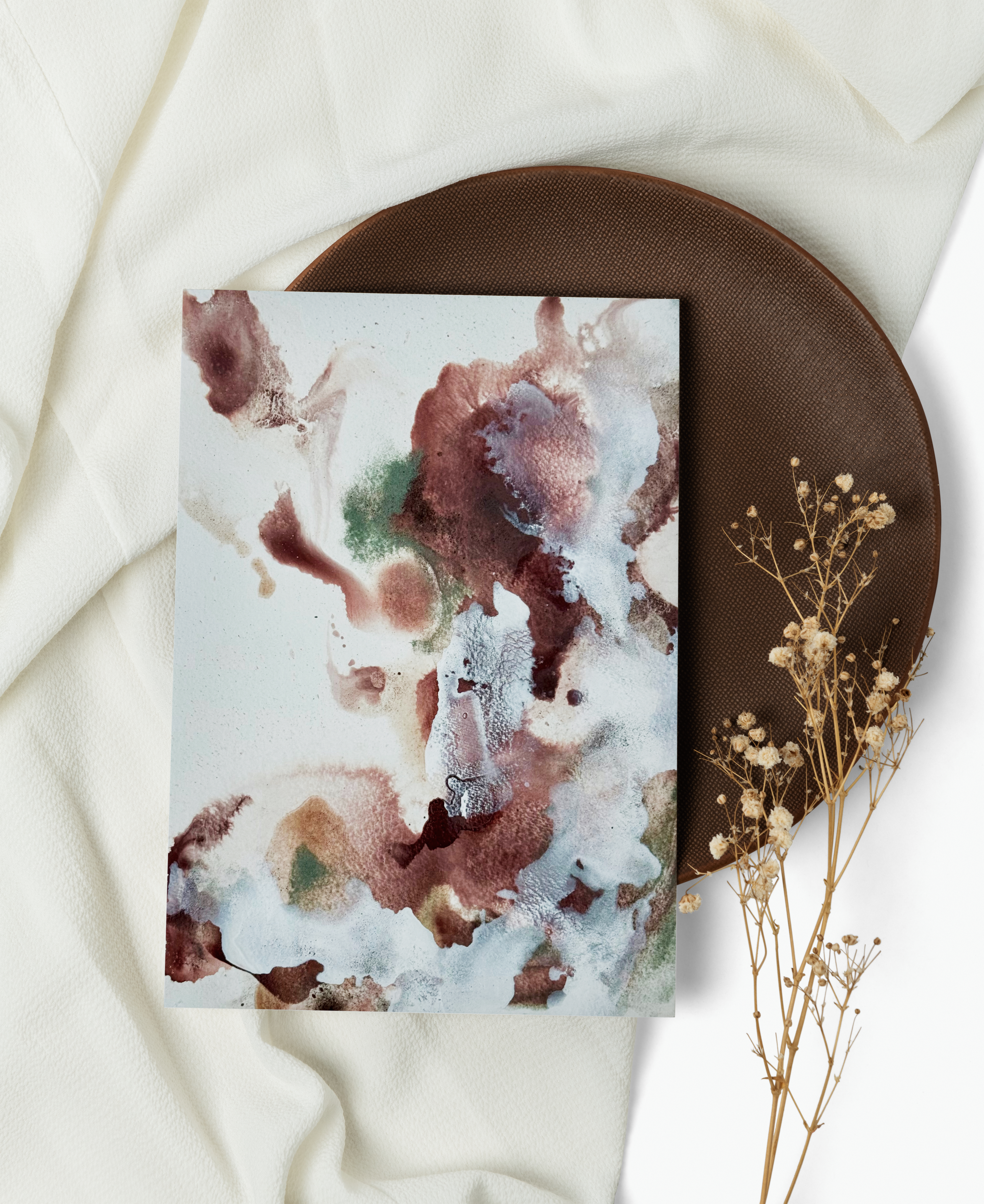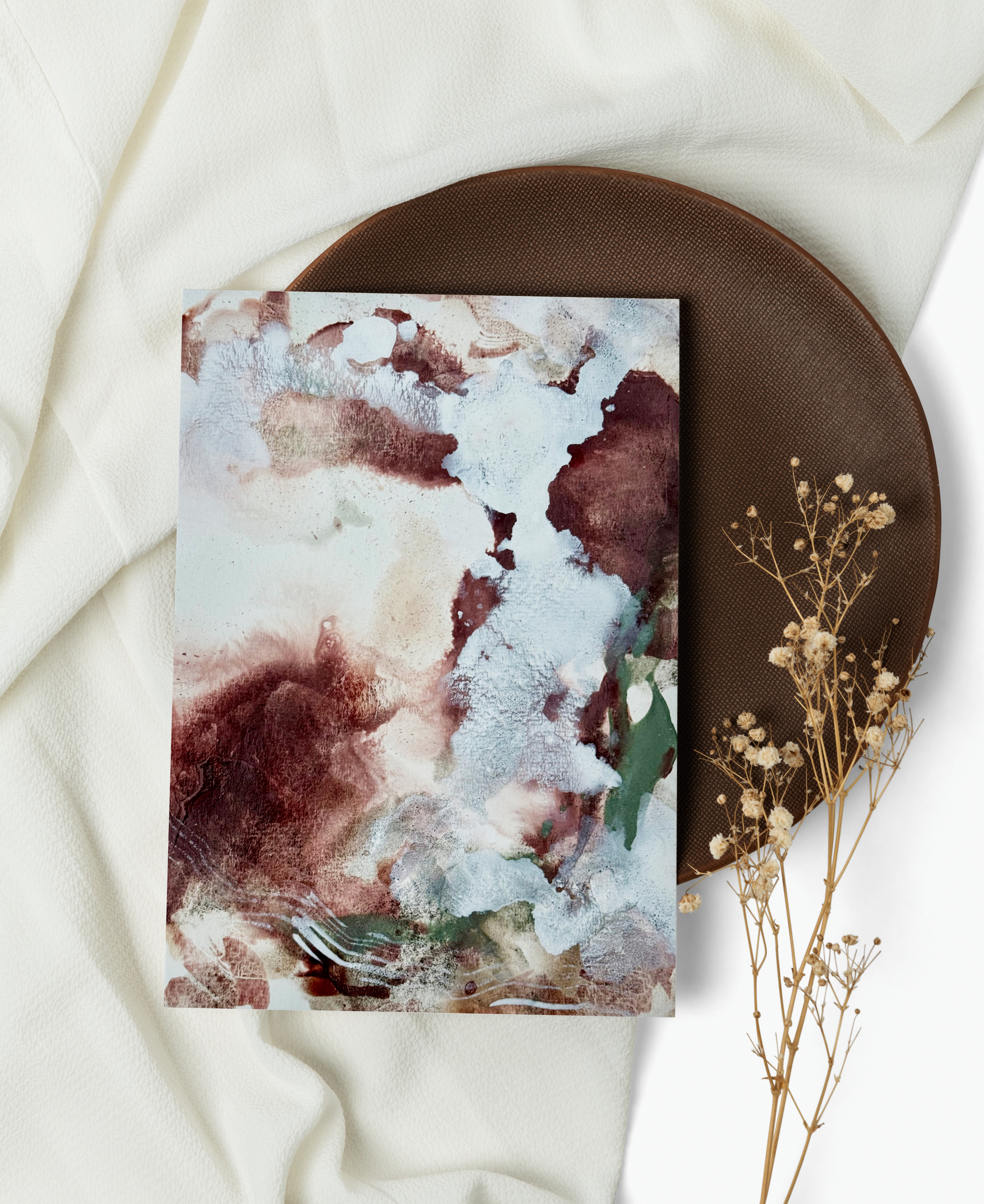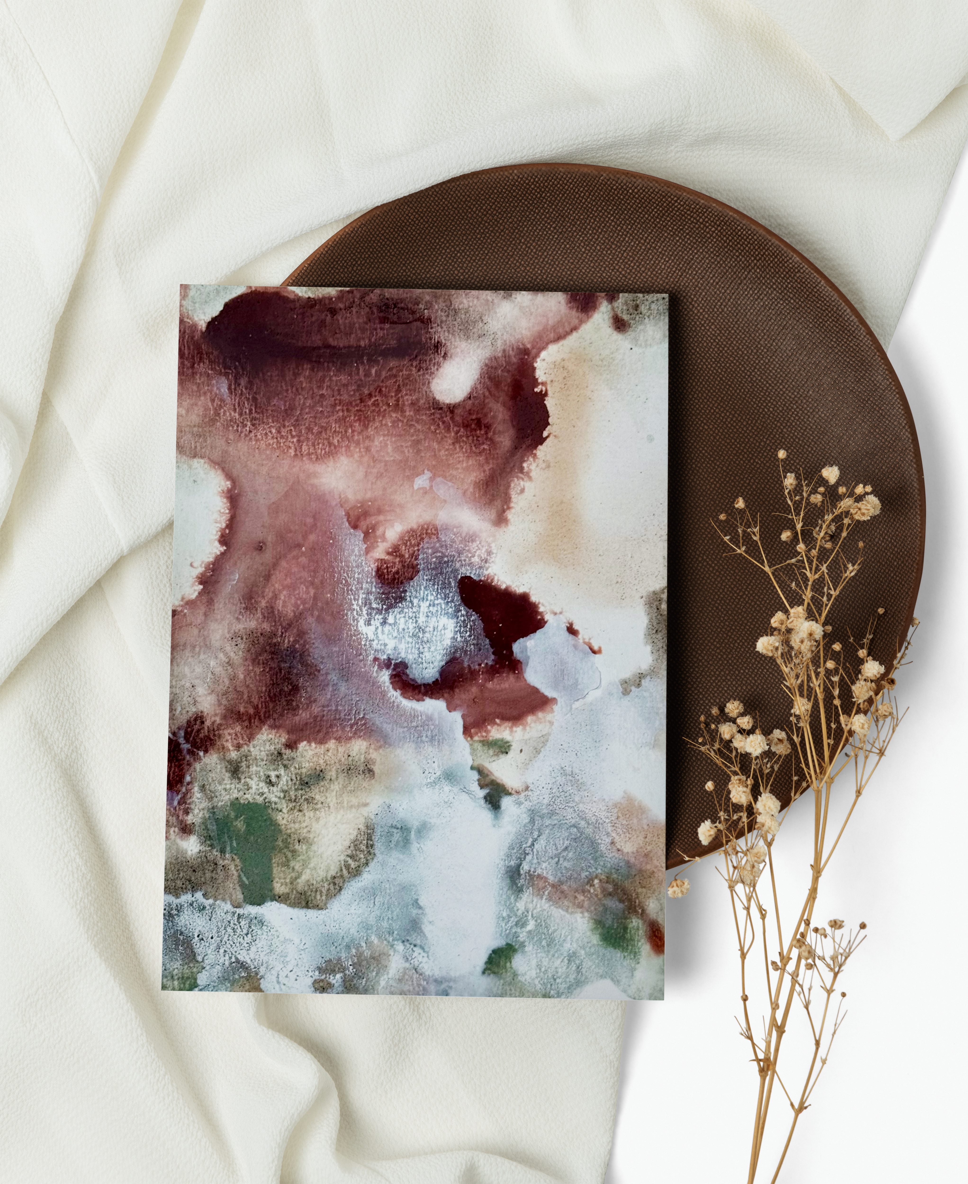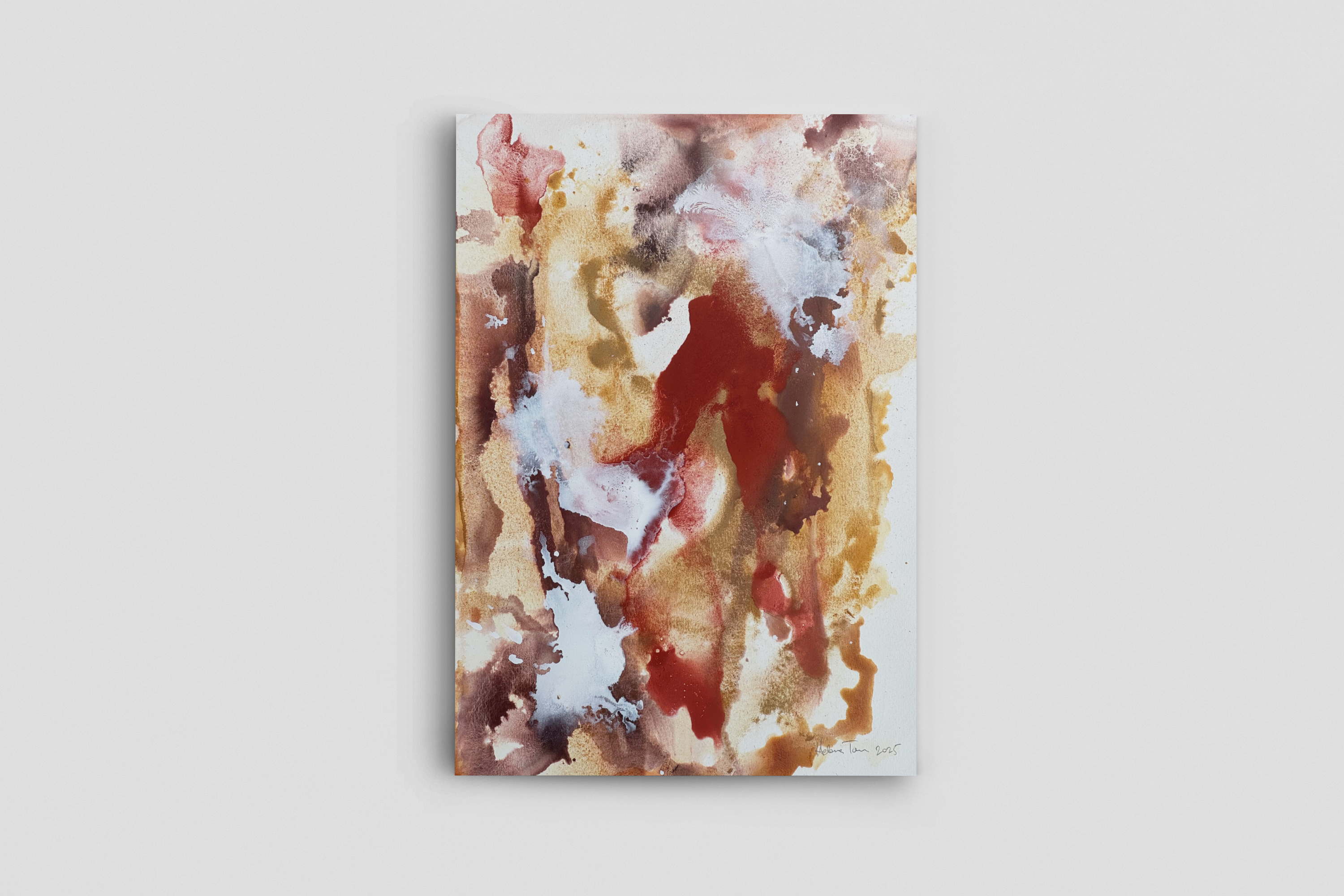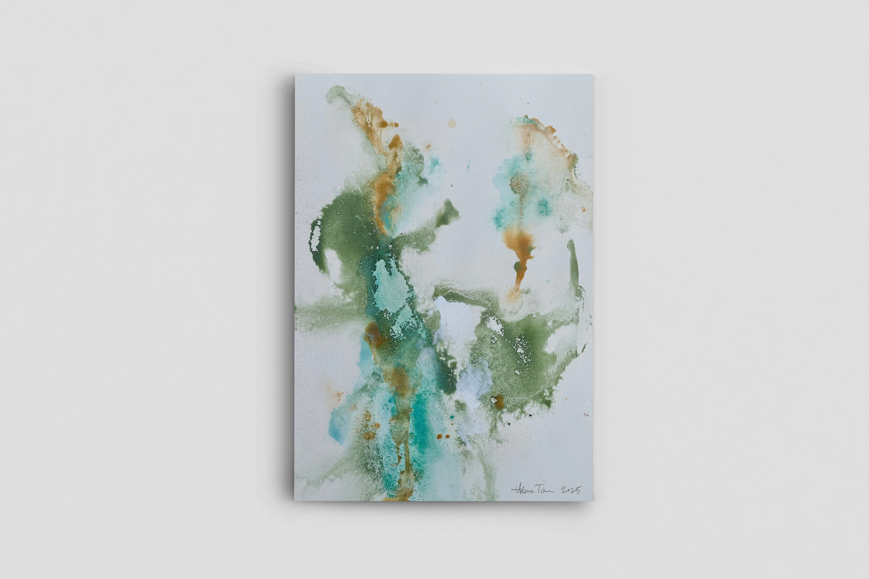 Helena’s practice is rooted in a sensitivity to place, material, and memory. She works through slow, intuitive layering, allowing washes, stains, and granulated pigments to settle over time, mirroring the way earth records history and emotion in strata. Each piece becomes a space for reflection on our physical and emotional relationship with the natural world.